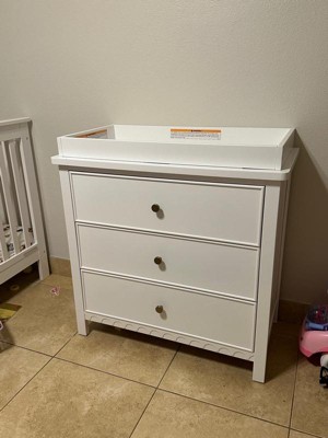 [This review was collected as part of a promotion.] This changing table is so nice the white finish makes it look even better. Assembly was so easy and I love that it’ feels so sturdy. It has three drawers with enough space in them. I also like that the drawers don’t fall out and that it came with some straps to screw onto wall for kids safety. I enjoyed this product & know that it will last a long time because the material feels so durable.