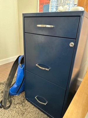 [This review was collected as part of a promotion.] I have been looking for a filing cabinet for quite a while. Some of them I looked at were not very sturdy, and others didn’t have the drawer . I knew that I wanted it to be a metal cabinet and I knew that it had to have a drawer. I really do like this seems to be a very sturdy filing cabinet . the drawers glide easily and it’s a dark blue color that fits in well with my decor. The size is about the same size as my home office desk and it works perfectly for my needs. I would definitely recommend buying this filing cabinet.