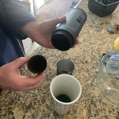 I ordered this travel espresso machine to have a coffee option when we are traveling. I was surprised at the size…… I was expecting something a little thinner for some reason, but this is still pretty compact. I was also surprised that it came with a option to use coffee grounds in addition to the coffee cups! That look like an upgrade on another option, but maybe the upgrade was just stainless steel? I was very excited that it had both ways of making coffee though! The Machine can either make coffee immediately, using hot water poured in the top or it can heat up the water to make coffee. However, using cold water takes about 2 to 4 minutes to heat up and then it makes the espresso. It’s a bit heavy to hold for that long ha ha! Overall, it feels pretty quality and I’m excited to have it in our camping stuff.