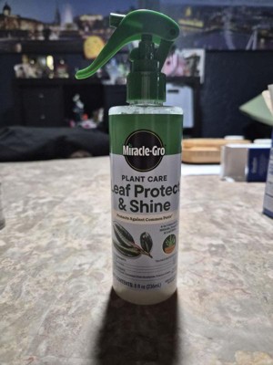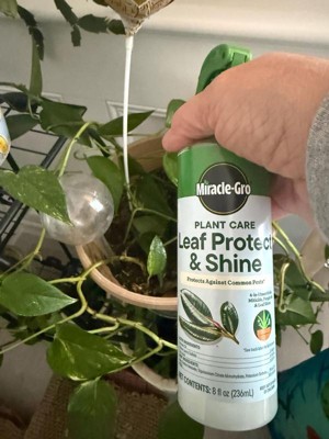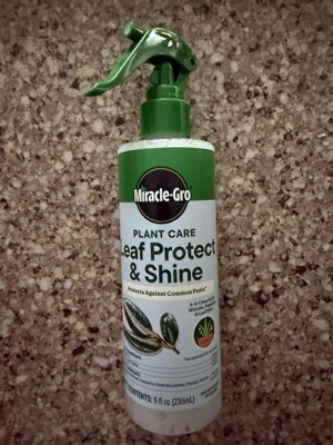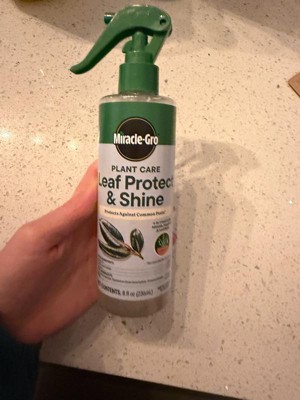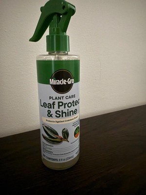 [This review was collected as part of a promotion.] The Miracle-Gro plant care leaf protect shine works well. I sprayed it on my plant leaves and it makes them look shiny. I have just started spaying them but they seem to be good.