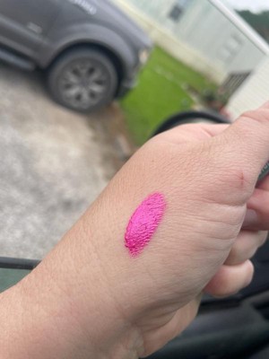 [This review was collected as part of a promotion.] Bright pink metallic - exactly the color I expected given the description. Fun color for a concert! Color stays on well. Brush is soft and easy to apply.