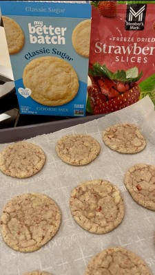 As if the sugar cookie by itself isn't already perfect, with the slightly crunchy exterior and buttery texture inside, it's easy to elevate with different mix-ins like freeze dried strawberry pieces! Love the recipes on the website and fail-proof flavors of this brand. Not too sweet and highly addicting!