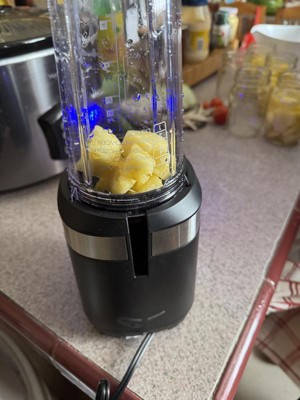 [This review was collected as part of a promotion.] Overall I love this. I use it every day and it is a wonderful space saver. works great on fresh fruit for smoothies, It is great for when you are on the go and have to quickly make a smoothie. this blender worked well both for blending and chopping. I make it tailored for me and no messy cleanup.I have used it on a daily basis since receiving it. The blender is so easy to use. I just put some frozen fruit, frozen bananas, strawberry lite yogurt, sweetener and non fat milk together and would match what I had with anything from any slushy/smoothie store. It was delicious. Definitly the single cup make it easy for everyone to make their drink just the way they like it. I am very well pleased by this product. Highly quality 100% recommend.