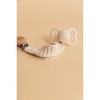 The Pacifier Clip Knitted - Ivory is undeniably charming, with its knitted strap adding a delightful texture and organic touch to my baby's attire. I received this pacifier clip as part of the Stellar Product Testing Panel. The quality appears robust, suggesting it can withstand daily use and my baby's curious grabs. Attaching the clip to my baby's pacifier was straightforward, however the wooden clip itself was a bit bulky when securing it to her outfit. My baby was also interested in putting the wooden clip in her mouth, which was a concern for me. While I appreciate the wooden clip over a metal one, a slightly smaller design would be preferable. What I loved most about this pacifier clip was its aesthetic appeal; it was incredibly cute, and my baby received numerous compliments while wearing it in public.