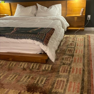The rug is great quality for the price and very soft. The only thing that I took a star off for is the color representation in the listing versus in person. The “rust” color that’s supposed to be brown ish in the photos is more of a purple/red color, but I would say all in all it’s still nice and works out well for us!