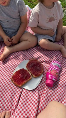 [This review was collected as part of a promotion.] Love the easy open bottle. It spreads easily. Raspberry is our favorite and this s less one is great for the kiddos. Has a great taste and a little spreads a long way.