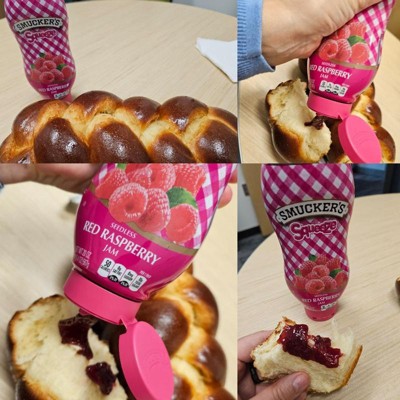 [This review was collected as part of a promotion.] I tried a tortilla wrap trend recipe where people usually add banana slices, strawberries, peanut butter and chocolate spread. Instead, I made my own version using peanut butter, this SMUCKER'S SQUEEZE SEEDLESS RASPBERRY JAM, and sliced peaches. It turned out really delicious! The squeeze bottle makes it easy to add just the right amount, and the seedless texture is nice and smooth. The raspberry flavor pairs really well with peaches and peanut butter. It's a fun and convenient jam to have when making quick snacks or creative recipes.