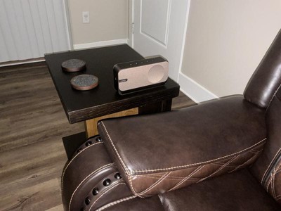 I am very impressed with the sound from this device. I have trouble hearing dialogue if there is too much background noise and a soundbar didn’t help. Got this on a whim and it’s amazing! Bluetooth connects to my tv and and I keep it closer to me. Love it! And the wood color. Well done.