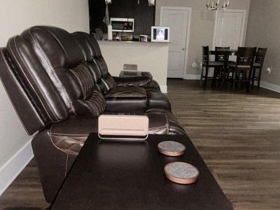 Purchased for master bedroom, integrates style and function with crisp full sound.
