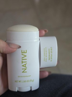 [This review was collected as part of a promotion.] I’ve been using native’s crisp pear&cashmere deodorant stick for a few weeks now, and I obsessed! It keeps me feeling fresh all day🤍finally, a clean deodorant that actually works.
