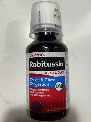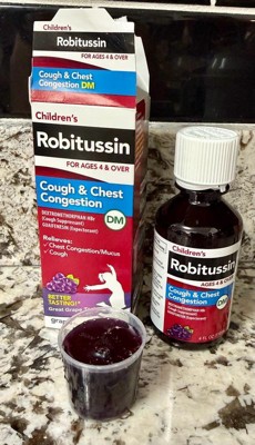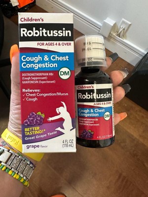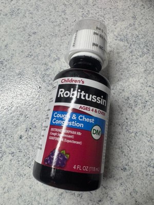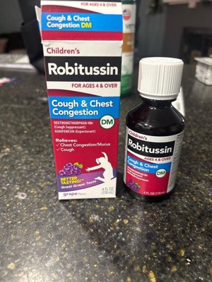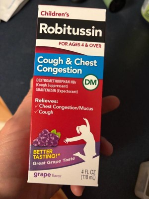 • 4 fl oz bottle of Children's Robitussin Cough & Chest Congestion DM, Cough Medicine, Grape Flavor