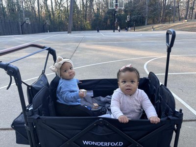 Honestly I have had this wagon for a year and I am so disappointed in it. I thought I would love this but I am extremely disappointed with my time with it. I thought over time I may get use to it but I have not. I do not like the lack of support there is for my one year old. My two year does not love it either. It is pretty hard to push/pull in rougher terrain. and honestly just so big and bulky to carry around I would rather take my smaller radio flyer wagon that is pretty much that same set up but it folds down so much smaller and is just overall easier and does about the same job for 1/4 the price. For the price I wanted to love it. but just hasn't been great.