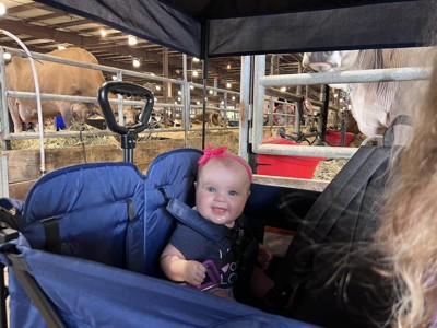 Finally decided to buy a wagon; I am so glad I did! It is truly a convenience to have when you’re out and about with little ones! We went to Hershey Park recently with my 7-month-old and 4-year-old. When the baby needed a nap, she was able to lay down and sleep comfortably. It rained, the kids were covered. There was enough room to put our bags in it also, so we were lugging them around. We also brought it “off-road” at fall festivals, it performed excellent. This wagon, hand-down is my favorite purchase. I will bring it everywhere we go!!