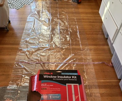 [This review was collected as part of a promotion.] I recieved this kit from 3M and was asked to evaluate it. We have a family room which is built on a slab foundation and has sliding patio doors. In New Jersey our winters can get cold and this room can be chilly. Any thing to make this room warmer would be appreciated. The kit was very easy to install and I could probably have done it by myself, but my husband lent a hand. More then enough double stick tape and the plastic was more than adequate to cover the doors. My always cold husband just said that he thinks it feels warmer in here. I love it already!