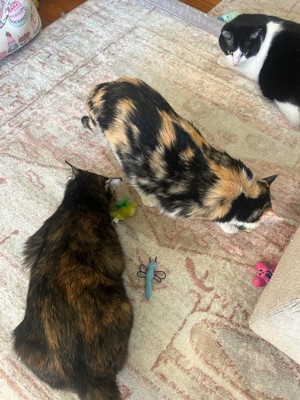 [This review was collected as part of a promotion.] As soon as I opened the package my little ginger bread tabby cat went nuts! He loved the size, colors, and shapes. Super safe for my cat and the quality will last longer than the cheap toys he’s abused in the past. Durable over time and useful when he’s bored!
