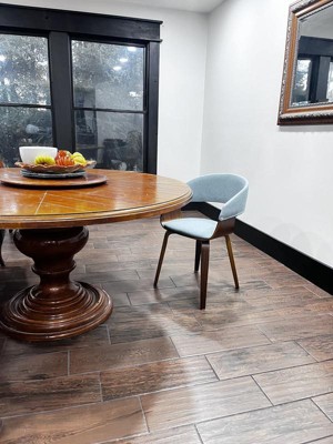 Add a sleek, mid-century style to your home with the Calinda Bentwood Dining Chair. Comfort comes easy with the curved back and seat. The bentwood frame in a natural finish with durable upholstery fabrics complements a formal or casual living space to create a one-of-kind look.