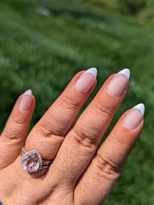 I love the shape and color of these! The pink outline around the French tip is such a cute twist on a classic mani. They feel elegant, but still fun, which is what I always reach for in press on nails.