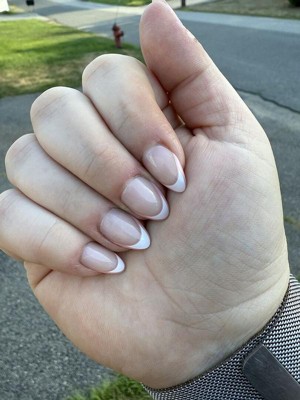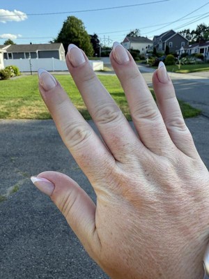 [This review was collected as part of a promotion.] These look better than I was expecting! Once I put them on I did a double take, the thin color border around the French tip make these look really polished. The shape of the nail & the French tip makes my nails look longer, even though the pressies aren’t super long themselves. Super happy with this neutral with a little bit of personal that will go with everything.