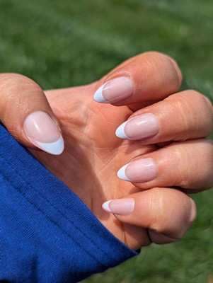 Olive & June Press-On Fake Nails - M Almond - Study Hall Open French - 42ct: Gloss Finish, 90% Recycled Material