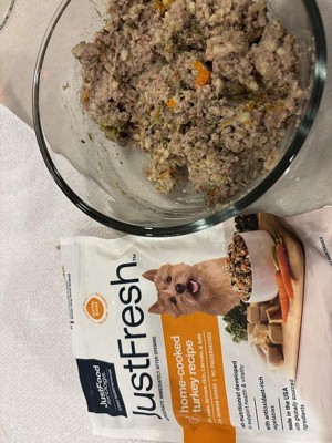 The ingredients looked fresh, but it has a sticky consistency and my senior pup didn't eat it. Not sure if she had trouble with it sticking to the bowl or if she just wasn't in the mood for turkey.
