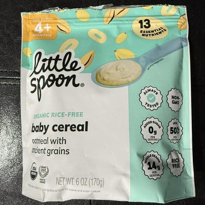 As a parent who is cautious about organic food ingredients searched for a while and was not happy with other baby food organic ingredients. Finally found this little spoon baby cereal with no rice and just pure grains. We’ve been using this Organic Oatmeal with Ancient Grains for about two weeks now, and it has quickly become baby’s favorite. What stands out: • The Texture: Unlike some baby cereals that turn into a "glue-like" paste, this has a nice, smooth consistency that mixes easily with breast milk or warm water. It doesn't clump, which makes it much easier for my little one to swallow as we transition to thicker textures. • Clean Ingredients: The fact that it’s rice-free , zero added sugar and Clean Label Project Certified gives me huge peace of mind. • Nutrient Dense: I love that it includes barley and millet—it’s a great way to introduce ancient grains early on. It also has iron and I’ve noticed it keeps my baby full longer than the standard single-grain rice cereals. A Quick Tip for Other Parents: If your baby is starting to experiment with flavors, try mixing in a spoonful of a fruit puree. I tried to add banana purée and steamed apple purée. Both are good .It mixes perfectly and adds a nice natural sweetness without any added sugar. It is worth every penny. Will definitely keep buying again.