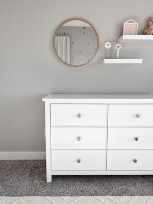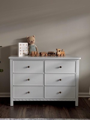 [This review was collected as part of a promotion.] I am thrilled with the Sasha 6 Drawer Dresser! It’s a cute, timeless piece that fits beautifully in our nursery, and the drawers are spacious enough to hold a surprising amount of clothes and essentials. I love the colour (blush) and the scalloped details! Assembly was simple to do by myself, and it definitely feels sturdy and well built! One small note, it seems due to the drawer locking mechanism, the drawers on the right side feel a bit stiffer to open and close, though not difficult—I can just feel the lock engage, while the drawers on the left are extremely smooth. Overall, I am really happy with this dresser and would highly recommend it for both style and practicality!
