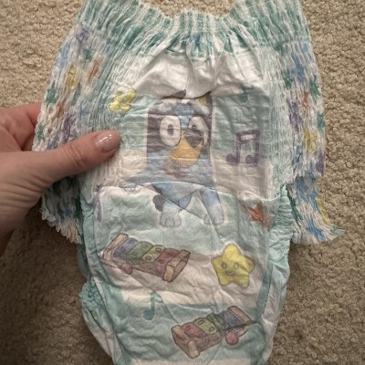 Ready to potty train with Bluey? Pampers Easy Ups Training Pants featuring Bluey makes it easy. They pair the feeling of real underwear with the protection of Pampers to make training easier for everyone. Give your child the confidence to take on potty training with a little more independence and a lot more fun. Easy Ups Training Pants feature stretchy sides and an underwear-like waistband for easy up and down, plus an ultra-absorbent core with LockAway Channel to help keep them dry day and night. With up to 2X better protection day and night*, Easy Ups deliver up to 100% leakproof protection. These hypoallergenic, dermatologist-approved training pants are made with 0% elemental chlorine, parabens, or latex** and backed by the Pampers Safety Promise. Fun Bluey designs motivate your toddler to potty train. Pampers Easy Ups are also available with Peppa Pig! Pair with Pampers Sensitive Wipes to help keep your toddler's skin healthy. Find your toddler's best fit in the following sizes: training pants 2T-3T (diaper size 4,15-34 lbs.), training pants 3T-4T (diaper size 5, 20-40 lbs.), training pants 4T-5T (diaper size 6, 23-50 lbs.), training pants 5T-6T (diaper size 7, 35-60 lbs.), training pants 6T-7T (diaper size 8, 46+ lbs.)