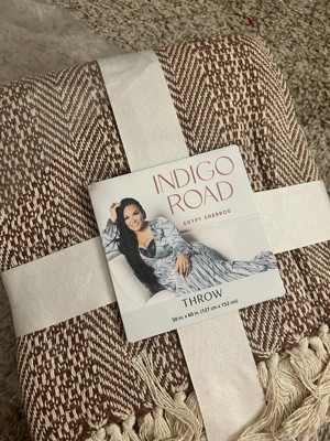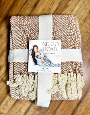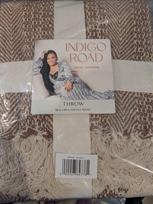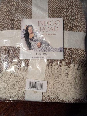 Indigo Road by Egypt Sherrod 50"x60" Anella Chevron Stripe Tasseled Cotton Rich Throw Nutshell