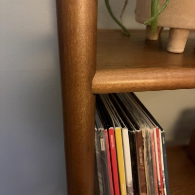 • A: The bookcase is made from a wooden frame with a veneer surface for a stylish finish.