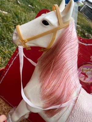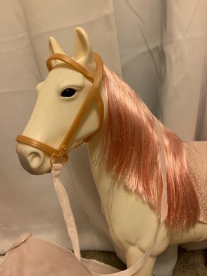 [This review was collected as part of a promotion.] This is the perfect gift for my niece! She loves horses & just started to takes horseback riding classes. This made a lovely birthday gift! The horse is perfect for her American dolls to sit on and it's well made. It has beautiful sparkly pink hair. The accessories are so cute too!