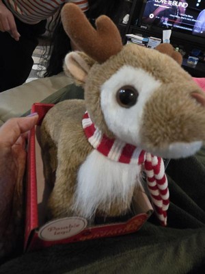 [This review was collected as part of a promotion.] What an adorable reindeer! My daughter's new favorite plush toy! You can change the poses too. It has flexible legs and the eyes are super cute. Scarf in the neck is beautiful and very Christmas looking.