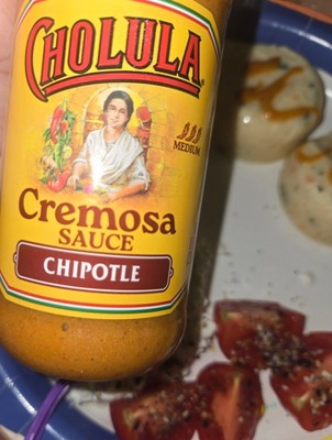 [This review was collected as part of a promotion.] I received a bottle of Cholula chipotle cremosa to try free. My family is a big fan of Cholula, so I figured we'd like this, but OMG! We've had it for about 2 weeks and the bottle is nearly empty. We've put it on eggs, in chicken salad, on sandwiches, meats... You name it. It's creamy and spicy and extremely flavorful.