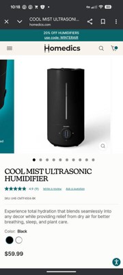 I needed another Homedics humidifier, and found a promotion on the top of the site page indicating WINTERAIR was a 20% off code for humidifiers. When I checked out the code did not work. Please update your site to remove that if it is not valid. It only upsets customers to leave reviews like this. I did take screenshot of what I saw.