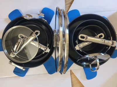 [This review was collected as part of a promotion.] Was pleasantly surprised by these pans. They came very will packaged and I really like the felt pieces included which I kept to prevent scratching when stacked inside of each other. I really wish the handles closed with the lids on the pans as having the kids separate did not help with the small space storage they promoted. The pans were very durable and the non stick worked very well. Loved the larger/deeper pans for making larger volume meals. Lots fit snug and provided good seal for doing potatoes. Couple things I would have like to see are that the handles on the pans got very hot so had to use a hot pad to handle while cooking. Wish they were a bit more heat resistant on the handles. Also with the handles on lids and deeper sauté pans had a lock mechanism as I often pick them up by the handles but they fold back down leaving my hands in contact with the pan. Would be like if they locked so they could be picked up by the handles. Lastly would be nice if the handles closed over the lids to store. These are promoted as pans that are good for small spaces but the lids need to be stored separate or next to for best storage with takes up more space. Overall these are great pans and I will continue to use them and keep them in my kitchen. They are very durable, easy to cook in, and very easy to clean. If I was I. The market for pans, I would consider these as an option. I am still interested in the long term durability as it has only been a few months but I have enjoyed so far and the sizes sold in the set are all perfect for what is needed for different items prepared. It is a very versatile set with the sizes and lids it comes with and holds heat very well. If anything they run a bit hot after being on the burner for a bit.