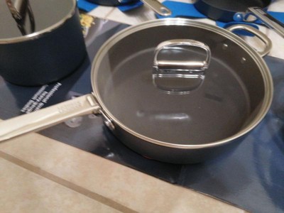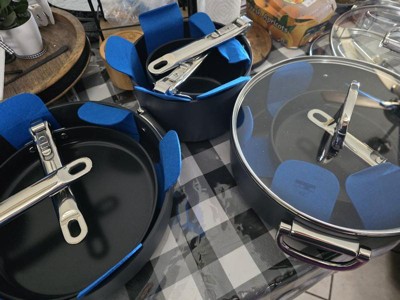 [This review was collected as part of a promotion.] I was so very excited when this arrived. I love the idea of a folding handle, especially since I have a small kitchen with limited cabinet space. I really appreciate a ceramic set since I no longer use anything with coatings or stainless steel. The blue is a beautiful color that’s perfect for a pop of color in a neutral kitchen.
