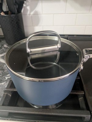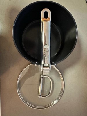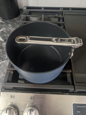 [This review was collected as part of a promotion.] This non-stick pot is easy to clean and store! The folding handle makes it so it doesn’t bang around in the cabinet and it’s easy to nest. It’s also scratch resistant!