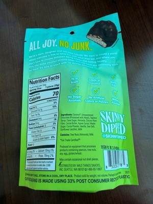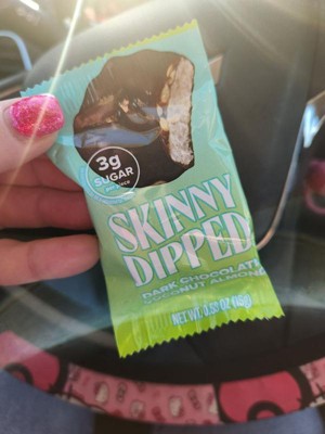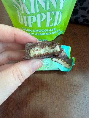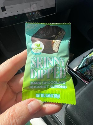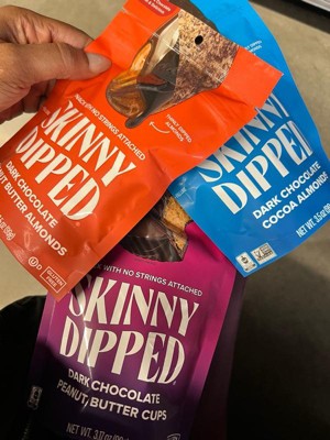 [This review was collected as part of a promotion.] First time trying any SkinnyDipped products. Good flavor for a less sugar item. Love that they are individually wrapped to throw into my bag for a quick treat. I personally would have liked a bit more chocolate but overall a tasty treat!