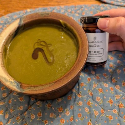 I love this pair of honey jars. That one is a wildflower, honey, which can be used with toast and butter, which is just my favorite. The hot honey is the one that really surprised me because it’s infused with chili peppers and it became the perfect marinade for our hot wings before the big game last night.