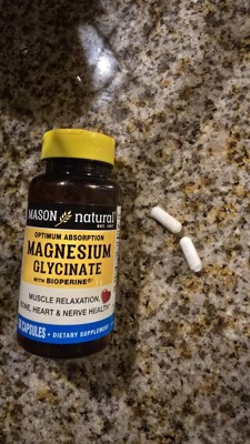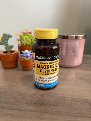 The Mason Naturals Magnesium Glycinate is an easy way to make sure I'm getting enough magnesium. I like to take magnesium to support my muscle relaxation and sleep. I know that the added black pepper improves absorption, so that's great. I find them easy to swallow. And I like that it's quality tested. For me, it's an easy way to support important body processes.