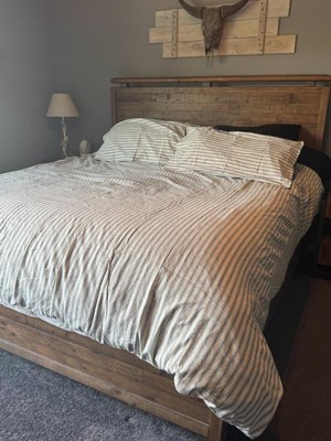 Full/Queen Relaxed Linen Stripe Duvet Cover & Sham Set Cove & Parchment - Parachute for Target