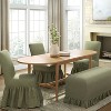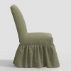 Elevate the look of your dinner table with the Ruffled Slipcover Dining Chair from Threshold™ designed with Studio McGee. This armless dining chair comes with a solid color slipcover featuring ruffled trim for an amazing look. Made of a wooden frame, the dining chair comes with an upholstered design to help you sit in comfort while dining or indulging in other activities.