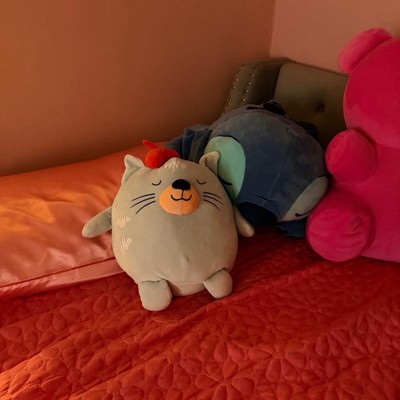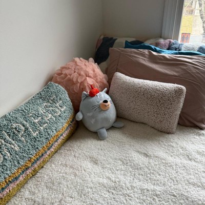 I bought a bunch of these Pillowfort weighted plush throw pillows for my kids and this cute little cat is my favorite one. He sits up on his own and is so soft and squishy. The weight is perfect for kids, just enough to be comforting. I love his little beret and cute face, I tell my kids to sleep like the kitty and it works (sometimes ;)