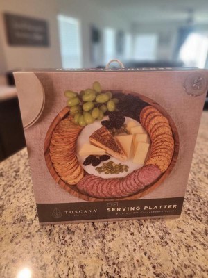 Toscana Isla Serving Platter Acacia Wood with Marble Cheese Board Insert Acacia Wood