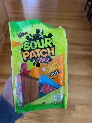 [This review was collected as part of a promotion.] These sour patch kids strips taste great, however, the label needs changing. “Sour Patch Kids 5 classic flavored strips” gave me the impression that there are only 5 strips in the container. I was pleasantly surprised to open it and see there are multiple strips. But this wording would have prevented me from purchasing. If I were standing in the checkout line, I probably would not have looked at the exact weight of this packaging and I would have chosen a different product. One pro for the packaging: I really appreciate the allergen warning visibility. As far as the candy itself, it’s the same great taste of sour patch kids that we know and love in a strip. They do stick together so they might be better suited for packaging with wax paper.