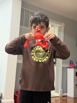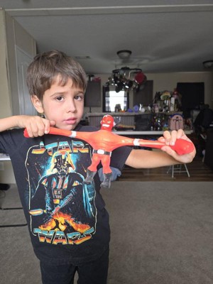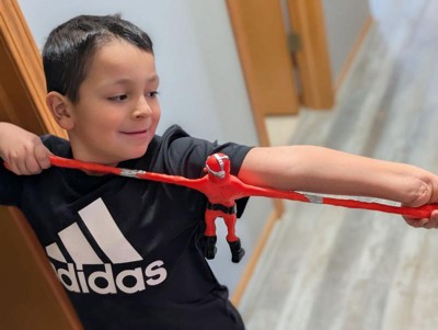 [This review was collected as part of a promotion.] My son enjoyed playing with this toy. The arms and legs have some stretch to them, but not as much as I’d have expected. I liked that it was ready to play with right out of the box and didn’t need any assembly.