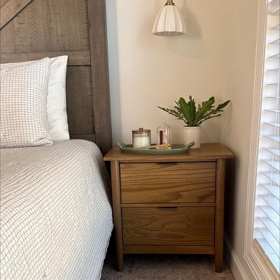 Wood and Cane 2 Drawer Nightstand Aged Oak - Hearth & Hand™ with Magnolia