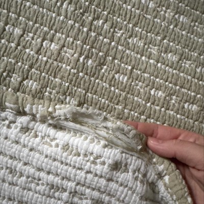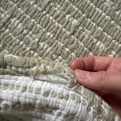 I bought this because I loved the simple stripes and the texture of the fabric but I have had this for about a month and the seams are already ripping in multiple spots. When I pay almost $100 dollars for something, I at least expect it to last a few months before showing signs of wear and tear…