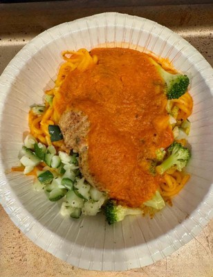 [This review was collected as part of a promotion.] It’s a good quick meal if you need one. Overall prep time is 5 minutes, unless you want to bake it and make it fancy. The spaghetti are a bit on a softer side, there’s enough sauce to actually make a difference. It has zucchini and broccoli for vegetables. The meatballs are quite small and this is the only downside if you need a bigger meal. I felt full after eating the portion, and I’m sure for most people it will be enough too. The bowl is paper bowl, greatly appreciate less plastic around my food for sure. The bowl help up perfectly fine through the microwave cooking, carrying and eating it