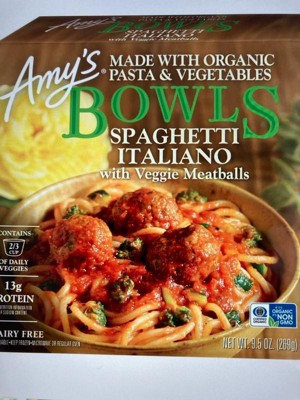 [This review was collected as part of a promotion.] Amy's kitchen is noted for being full of organic ingredients and meatless. I was pretty impressed that the meatless meatballs were pretty tasty, and a whopping 13 grams of protein! The noodles had a typical texture. The sauce was tomato with some other veggies, and counted as 2/3rds cup towards our daily veggies. I also like that this pasta is dairy free. This product is on par with other frozen meals and is a nice alternative for those with dietary restrictions.