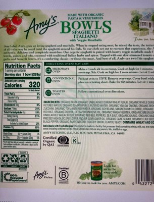 Amy's Frozen Spaghetti Italiano Bowl - 9.5 oz